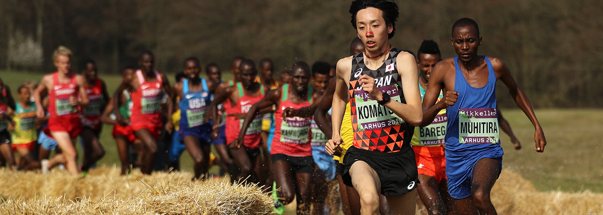 Yohei Komatsu leads during the early stages of the senior men's race at the IAAF/Mikkeller World Cross Country Championships Aarhus 2019 (© Getty Images)