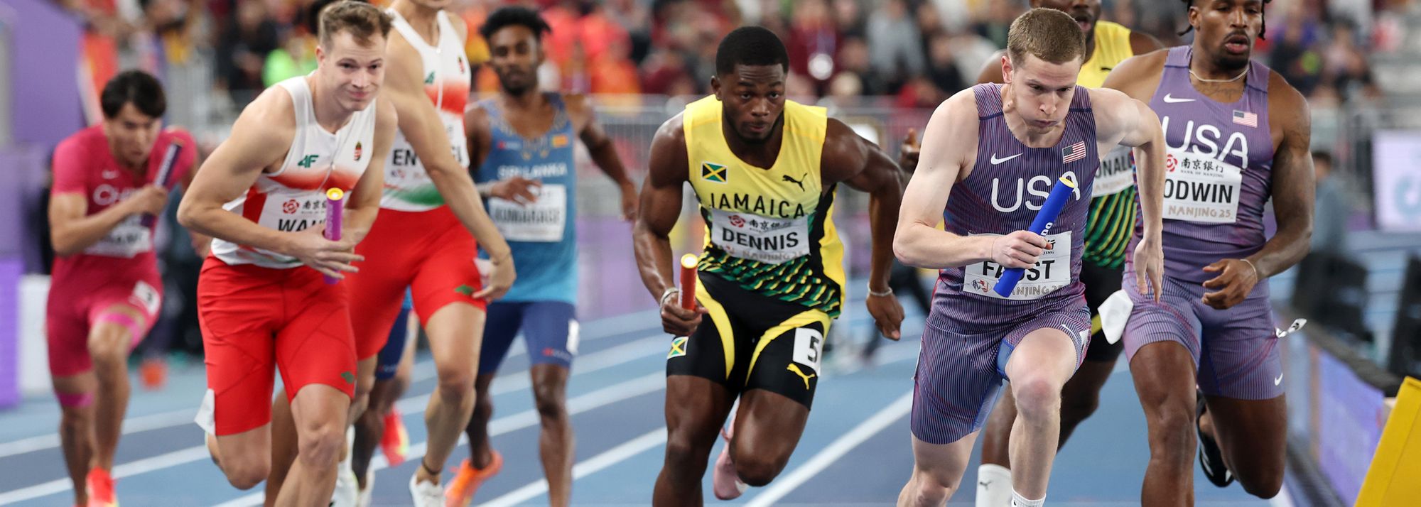 Hungary, Jamaica and USA in the men's 4x400m at the World Indoor Championships (© Getty Images)