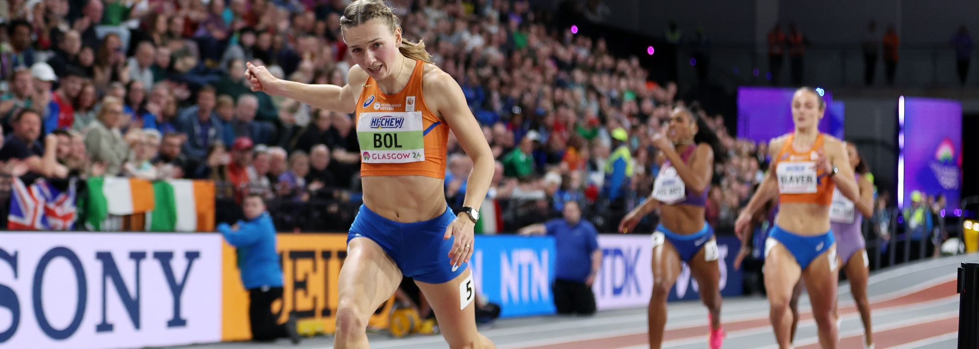 Femke Bol wins the 400m at the World Athletics Indoor Championships Glasgow 24 (© Getty Images)
