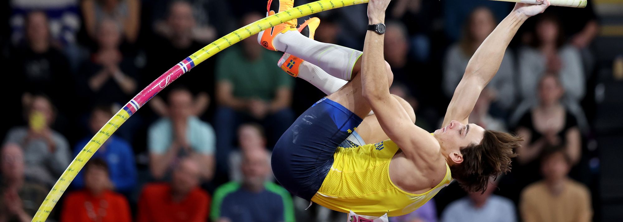 Mondo Duplantis in the pole vault at the World Athletics Indoor Championships Glasgow 24 (© Getty Images)