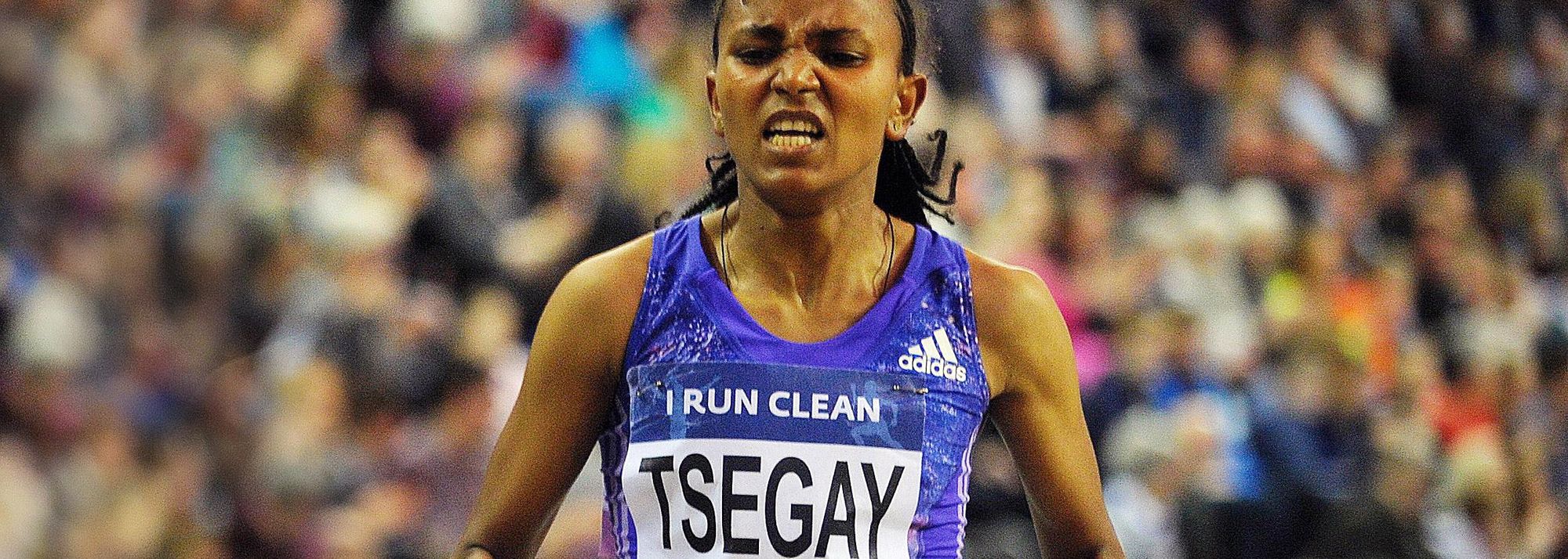 Gudaf Tsegay in the 1500m at the IAAF World Indoor Tour meeting in Glasgow (© AFP / Getty Images)