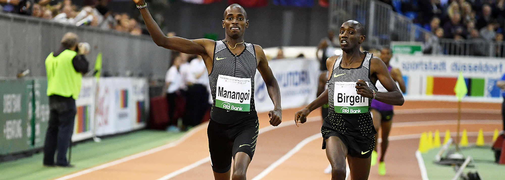 Elijah Manangoi wins the 1500m at the IAAF World Indoor Tour Meeting in Dusseldorf (© Gladys Chai von der Laage)