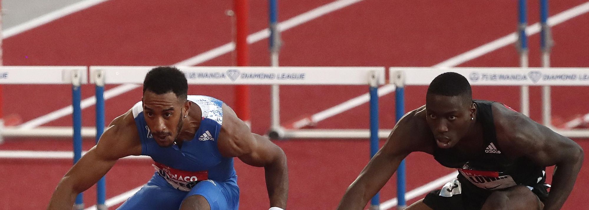 Orlando Ortega and Grant Holloway in action in the sprint hurdles (© Getty Images)