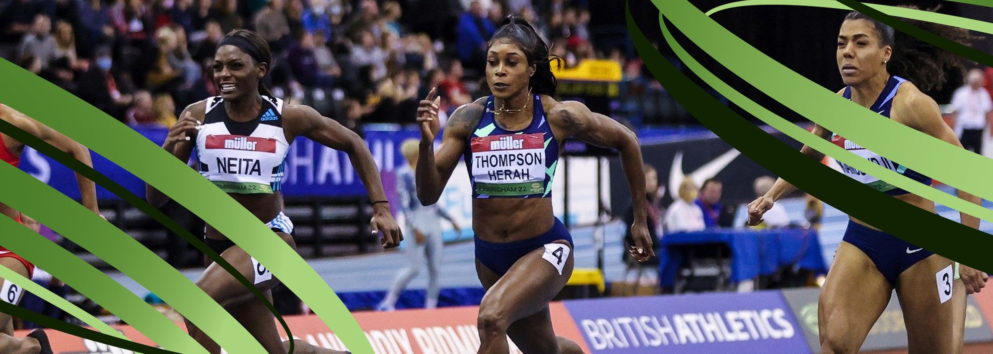 Elaine Thompson-Herah races the 60m in Birmingham (© Dan Vernon)