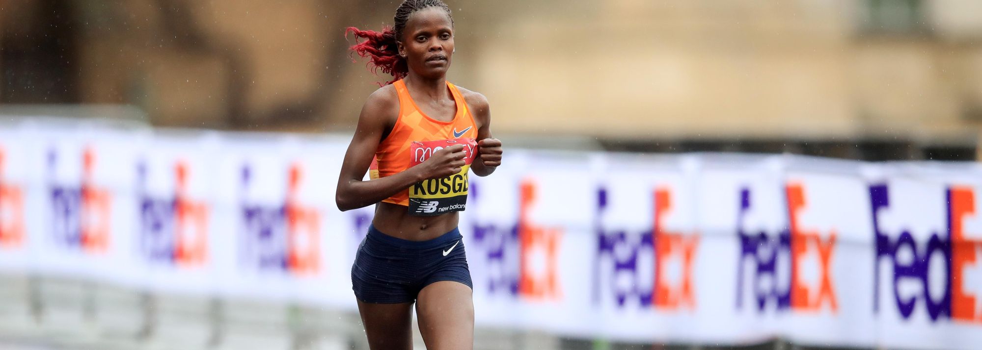 Brigid Kosgei on her way to winning the London Marathon (© Getty Images)