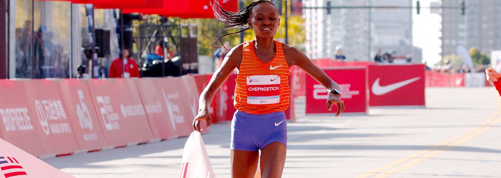 Ruth Chepngetich successfully defended her title at the Bank of America Chicago Marathon on Sunday (9), winning the World Athletics Elite Platinum Label road race in 2:14:18 – just 14 seconds shy of the world record.
