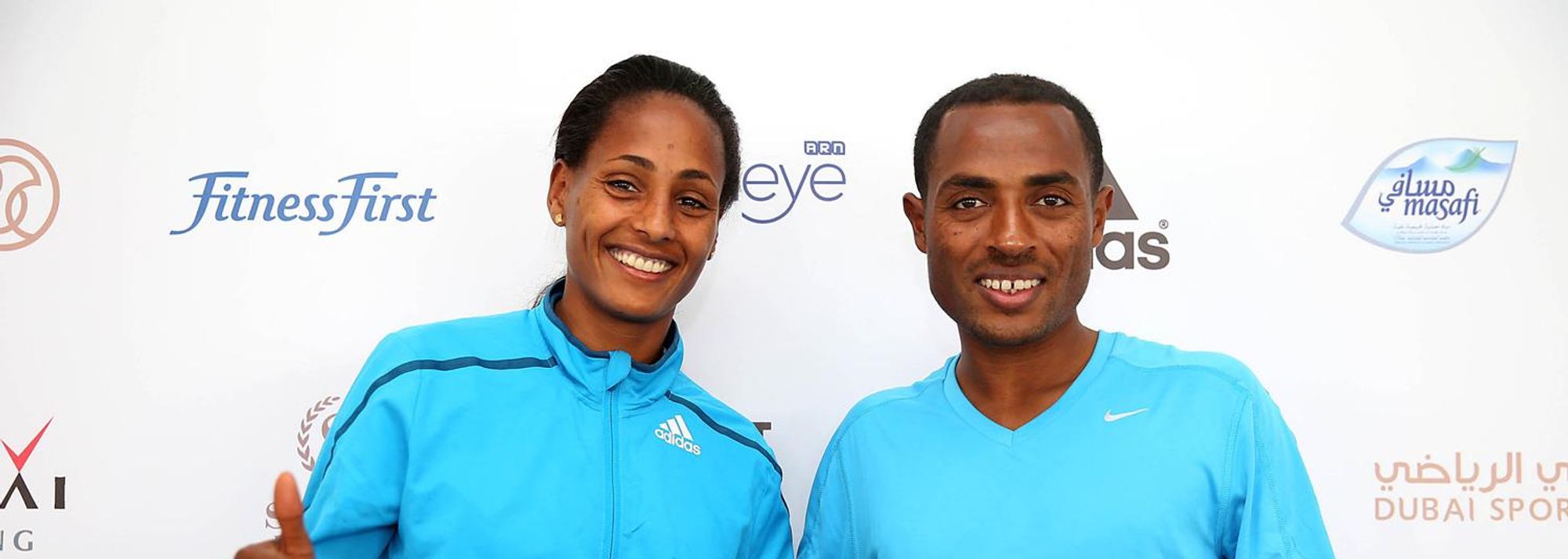 Aselefech Mergia and Kenenisa Bekele ahead of the 2015 Dubai Marathon (© Giancarlo Colombo / organisers)