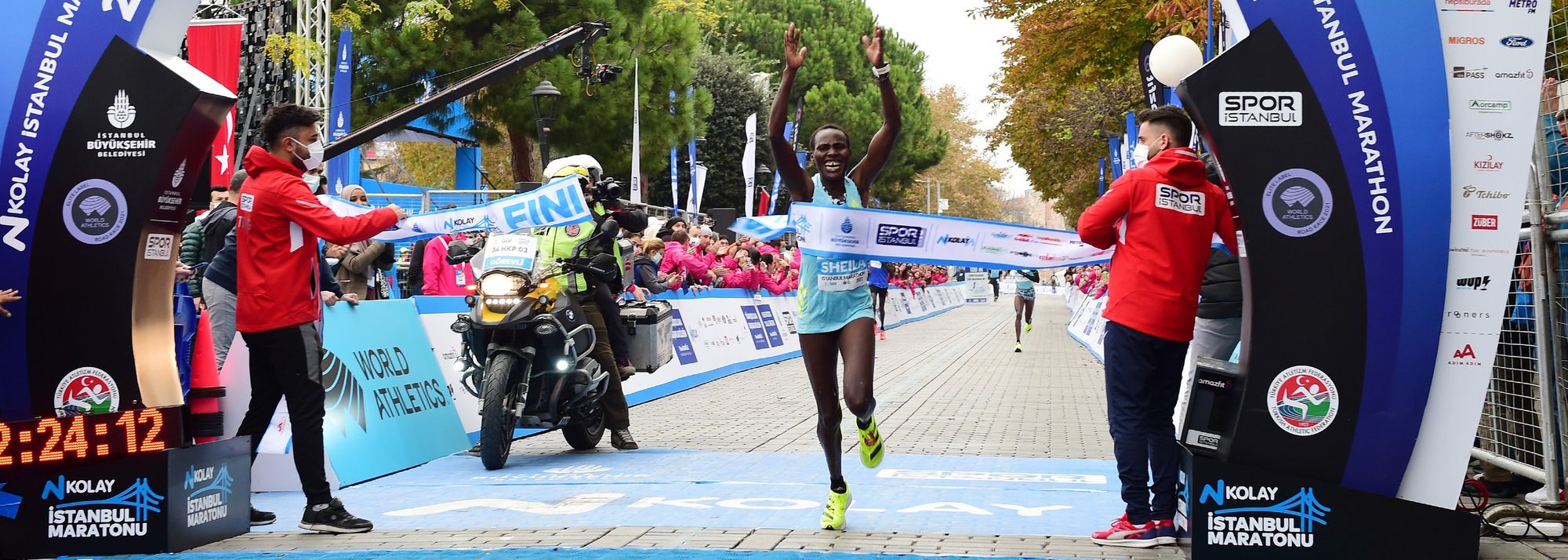 Kenya’s Sheila Jerotich led a sibling 1-2, while Uganda’s Victor Kiplangat claimed a debut win at the N Kolay Istanbul Marathon, a World Athletics Elite Label road race, on Sunday (7).