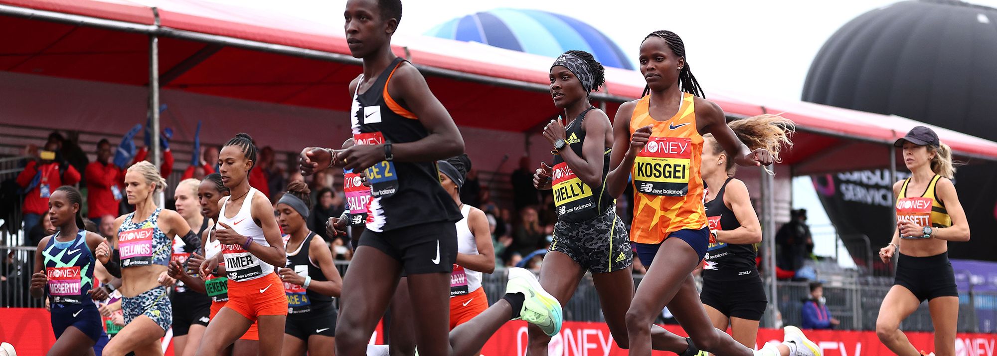 Brigid Kosgei at the start of the 2021 London Marathon (© Getty Images)