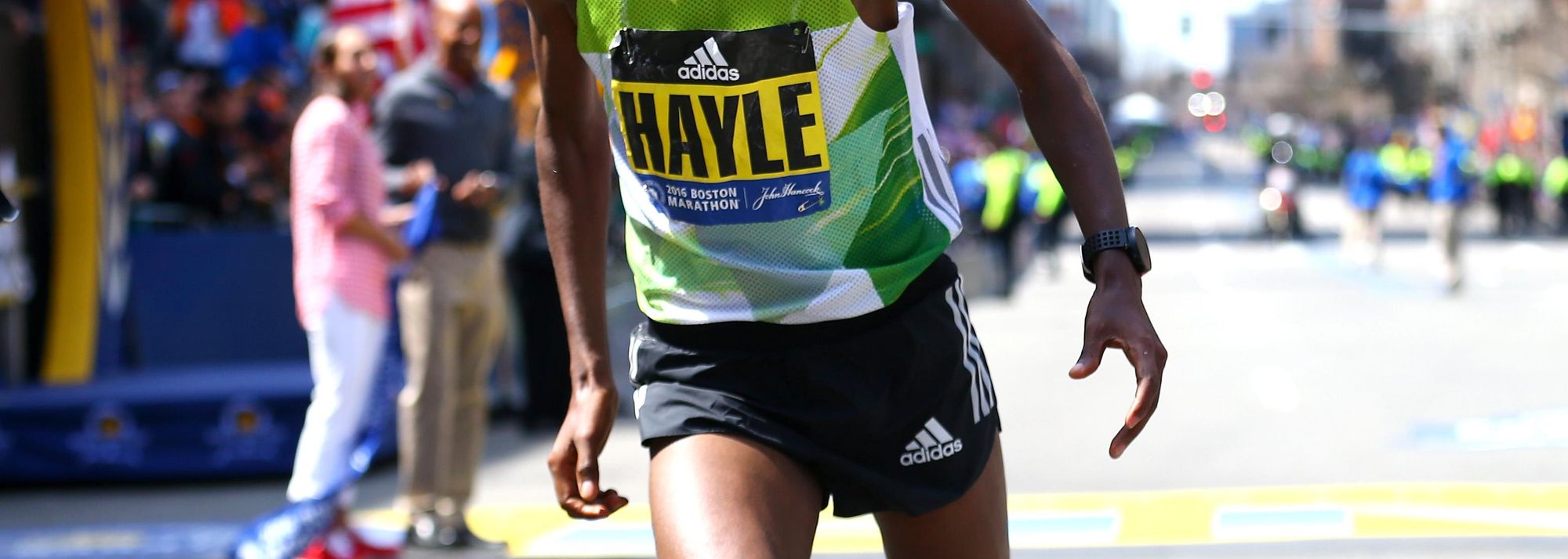 Lemi Berhanu Hayle after winning the 2016 Boston Marathon (© Getty Images)