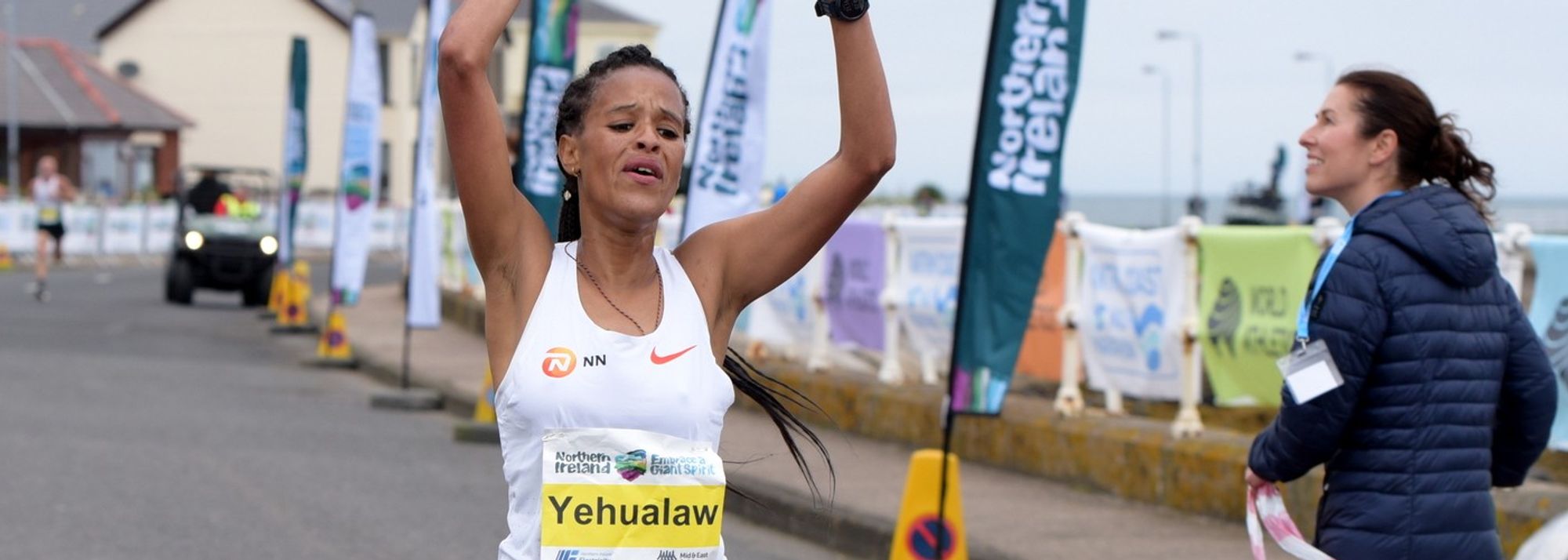 Yalemzerf Yehualaw breaks the world record at the Antrim Coast Half Marathon (© Antrim Coast Half Marathon)