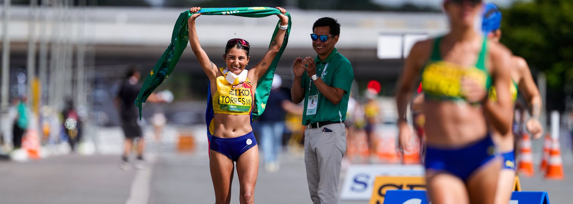 She becomes just the third Ecuadorian athlete to win at the World Race Walking Team Championships, after three-time winner Jefferson Perez – who was holding the finish-line ribbon here in Brasilia – and 2022 35km winner Morejon.