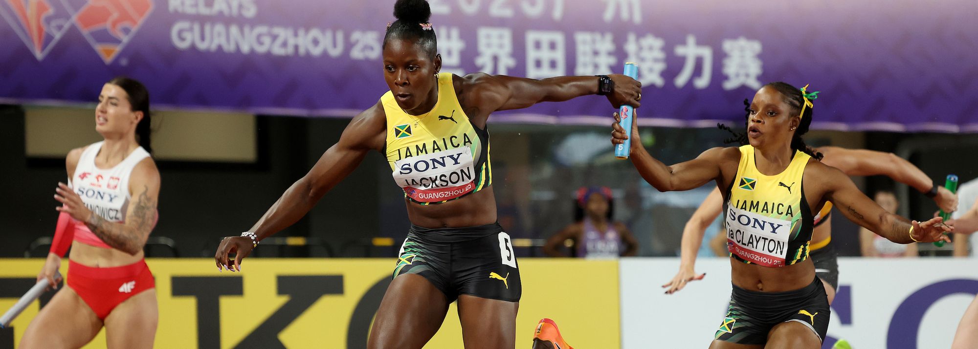 Women's 4x100m action at the 2025 World Athletics Relays (© Getty Images)