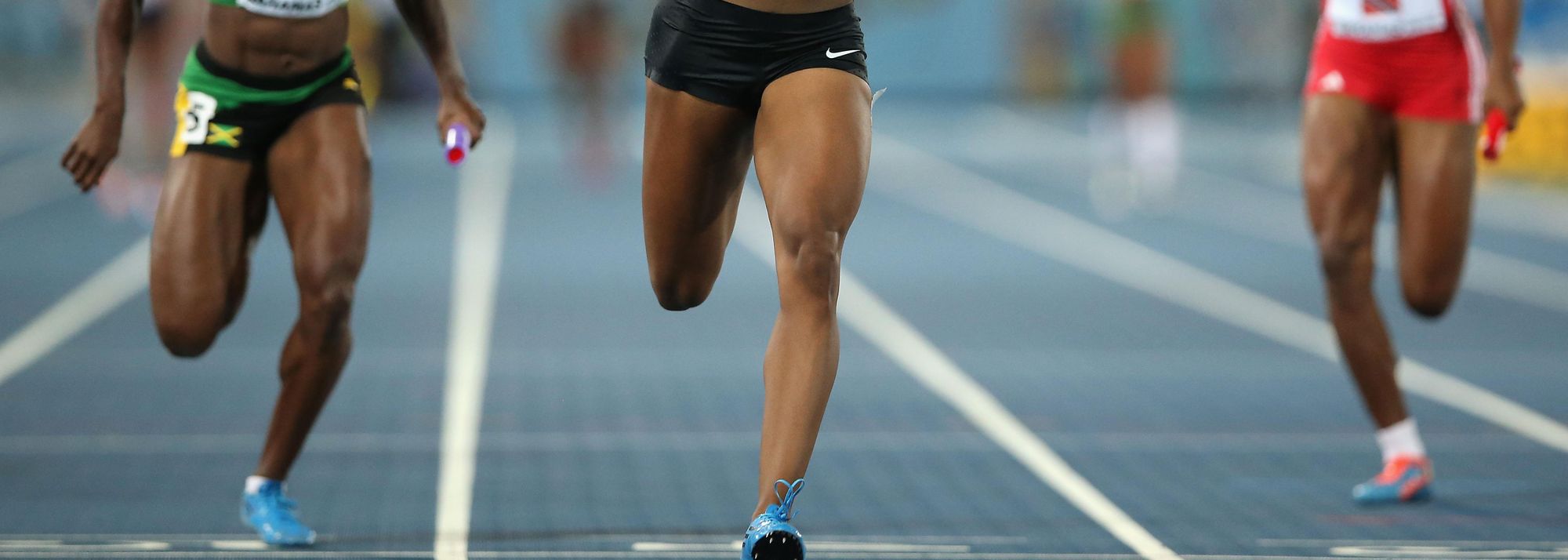 Tianna Bartoletta and Alexandria Anderson set the race up, staying even with the Jamaican lead-off pair of Carrie Russell and Kerron Stewart.
