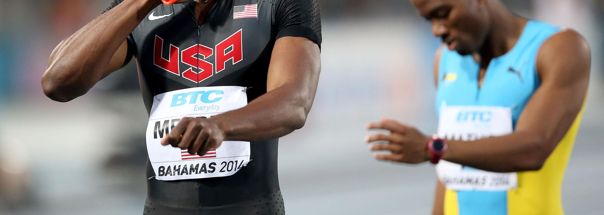 LaShawn Merritt may have won the 4x400m relay for the USA, but he had to beat 17,004 Bahamians to do it. The USA barely led through the entire race, and Merritt had to come from third place to deliver the 2:57.25 victory.