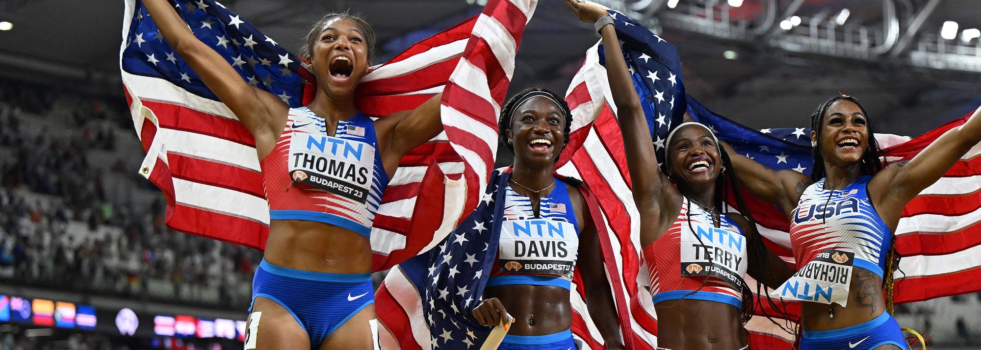 The winning US 4x100m team at the World Championships in Budapest (© Getty Images)