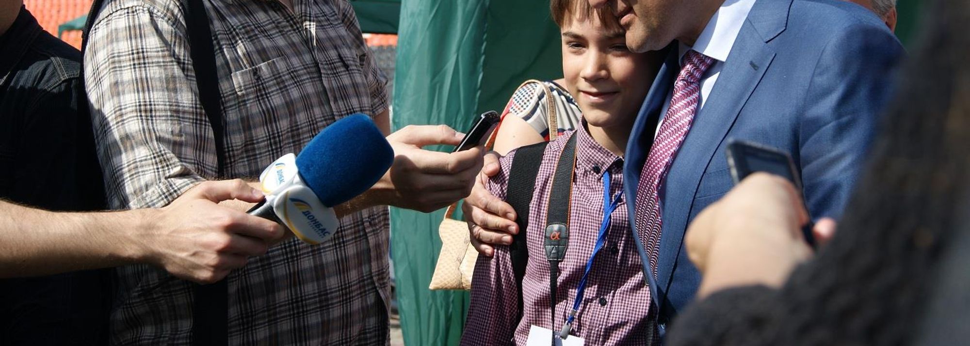 Young Ukrainian athletics journalists interview head of Donetsk Regional State Administration Andriy Shyshatskiy (© Donetsk 2013 LOC)