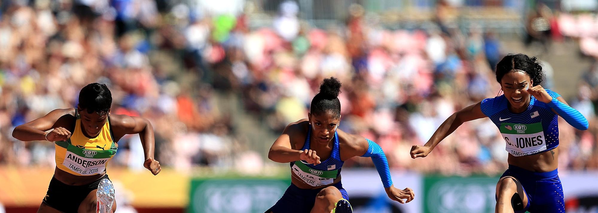 Sprint hurdler Tia Jones won the USA’s first individual gold medal of the IAAF World U20 Championships Tampere 2018 on the sixth and final day of competition – but only just.