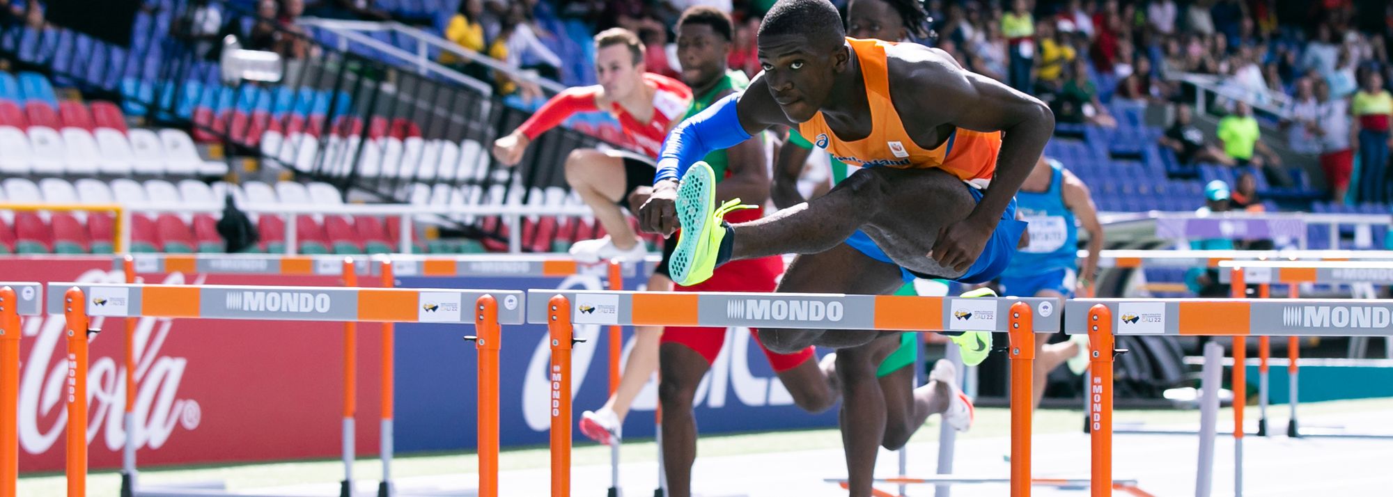 Matthew Sophia of the Netherlands in the 110m hurdles heats at the World Athletics U20 Championships Cali 22 (© Marta Gorczynska)