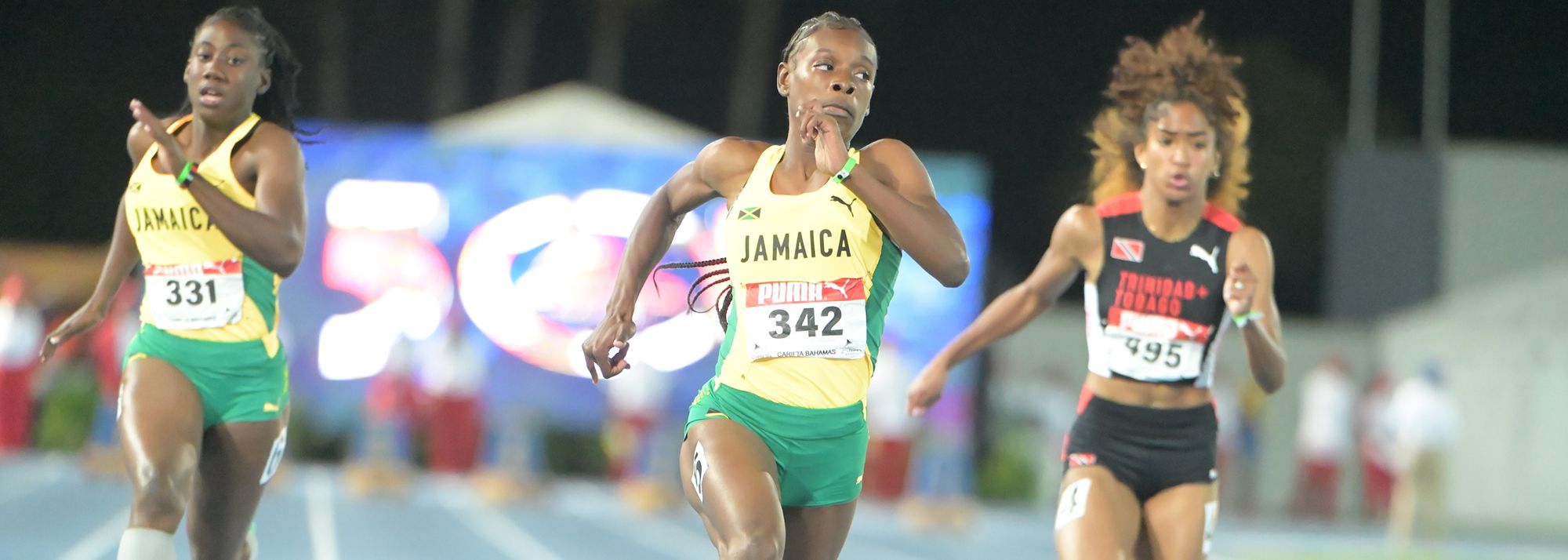 Jamaica's Alana Reid on her way to a win in the 100m (© Kermit Taylor)