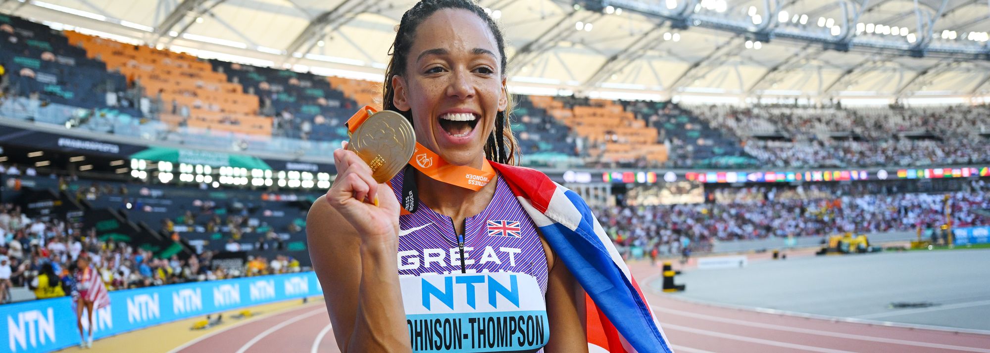 Katarina Johnson-Thompson at the World Athletics Championships Budapest 23 (© Getty Images)