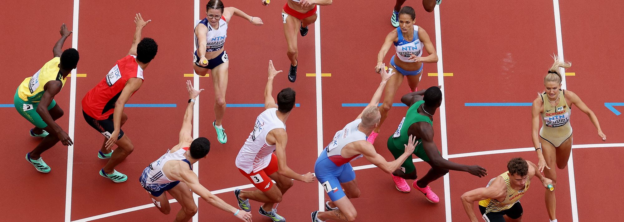 Action from the mixed 4x400m at the World Championships Budapest 23 (© Getty Images)