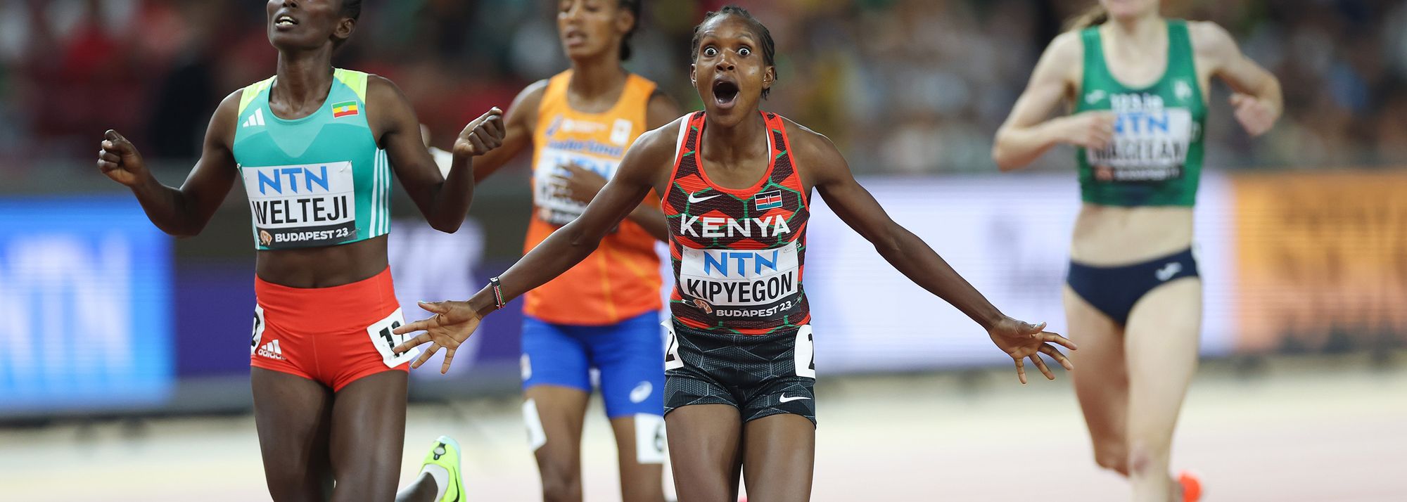 Faith Kipyegon celebrates her 1500m win in Budapest (© Getty Images)