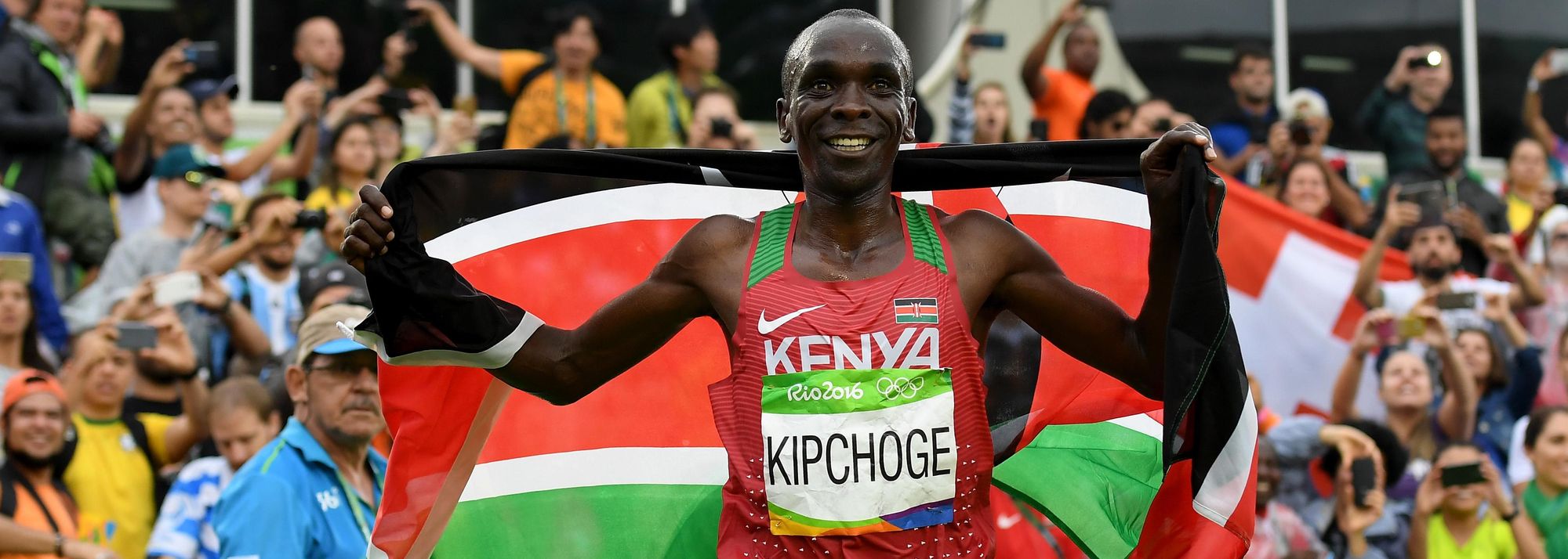 Eliud Kipchoge after winning the men's marathon at the 2016 Rio Olympic Games (© Getty)