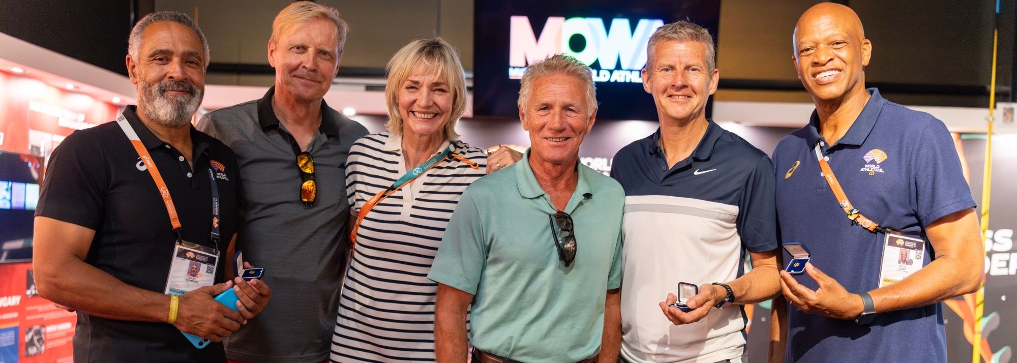World Athletics Heritage Director Chris Turner welcomed the illustrious group, commemorating the 40th anniversary of the inaugural championship meeting. Today’s event was held at the MOWA exhibition in Etele Plaza.