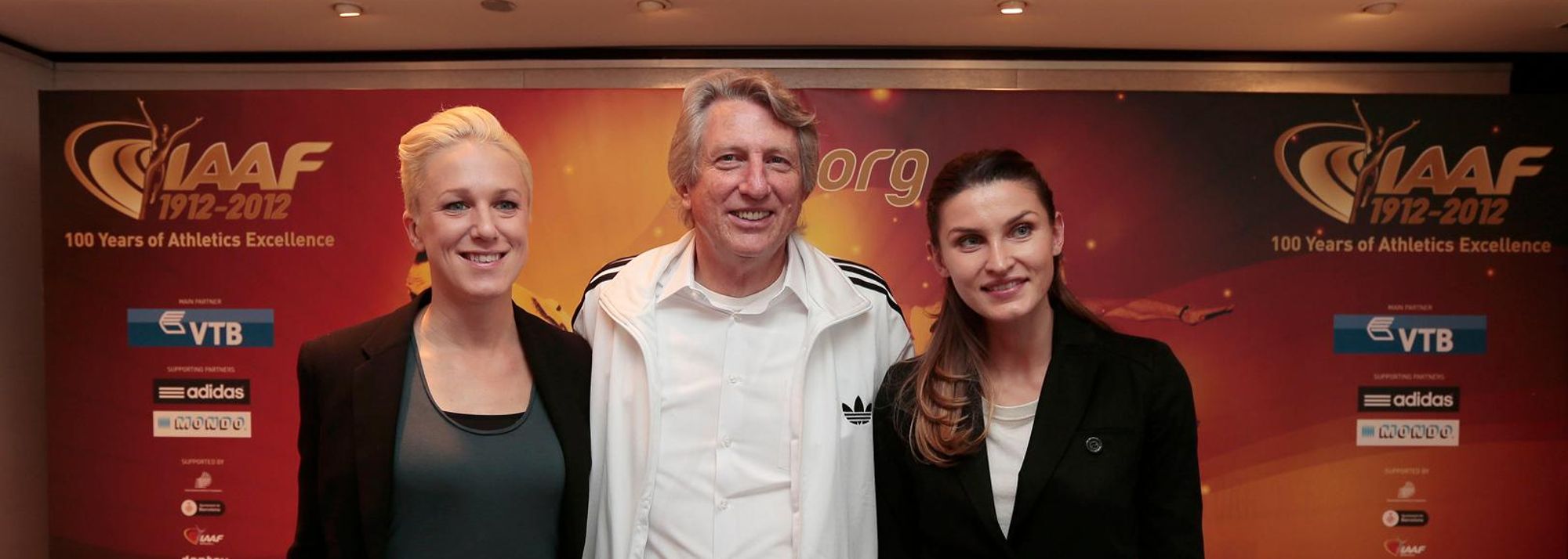 23 November 2012 – Barcelona, Spain – The 1968 Olympic High Jump men’s champion Dick Fosbury and the 2012 Olympic High Jump women’s champion Anna Chicherova appeared at the press point at the IAAF Centenary Gala in Barcelona. These were some of the highlights.