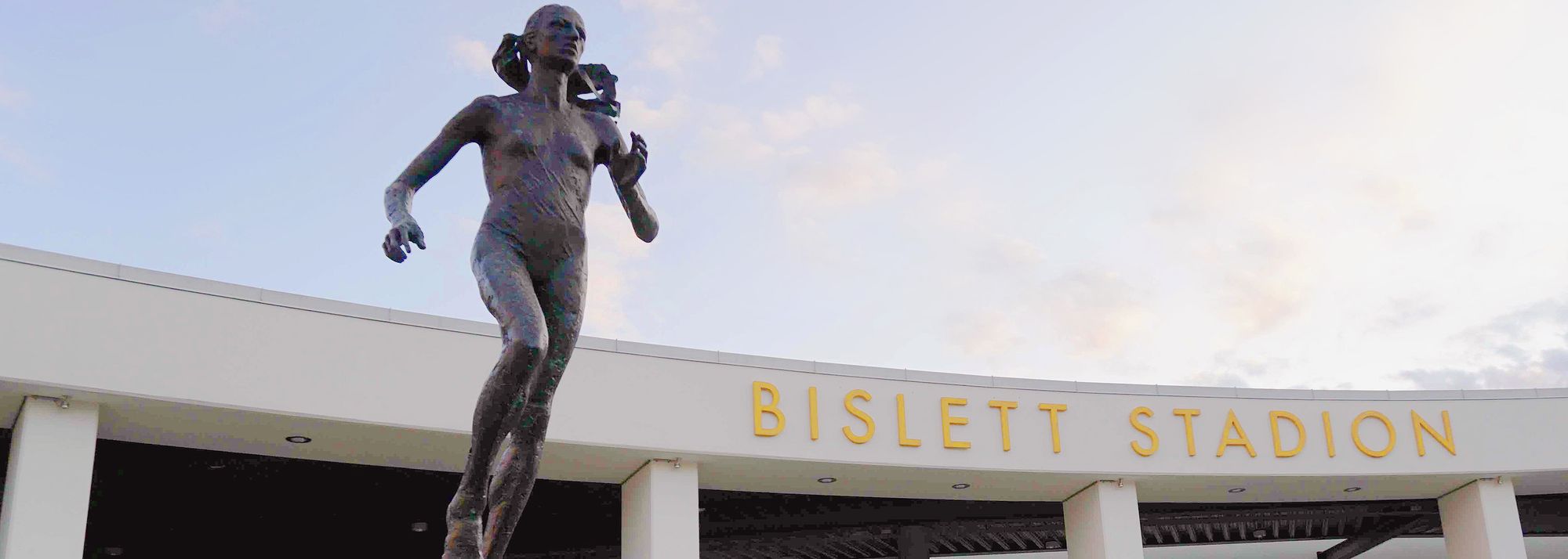 Outside Bislett stands a bronze statue of Waitz sculpted in 1984 by Norwegian artist Nils Aas.