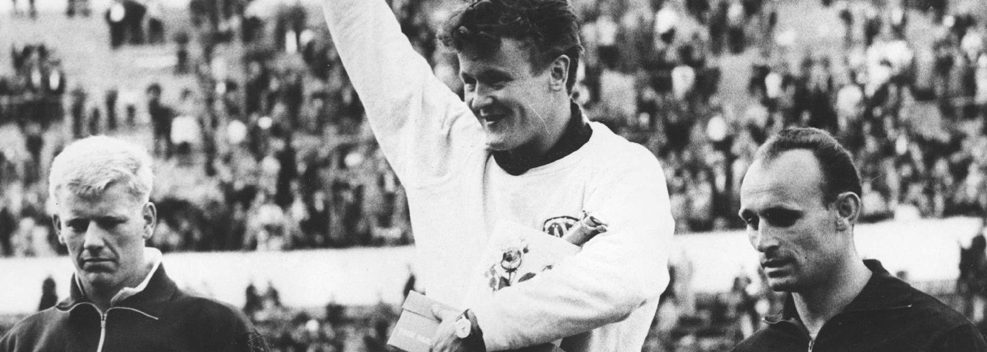 Finnish javelin thrower Jorma Kinnunen at Helsinki's Olympic stadium (© Wikimedia Commons)