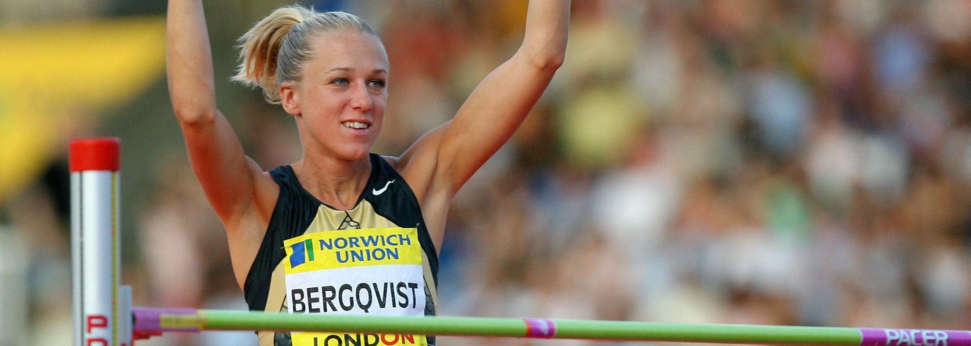 The 2005 world title and the world indoor record set in February 2006 proved the twin peaks of a 15-year international career. Under Yannick Tregaro – her coach since 2003, the former junior international high jumper who guided Christian Olsson to world and Olympic triple jump glory – Bergqvist found her way back towards form in the build-up to the 2006 European Championships in Gothenburg, coming close to a 2.10m outdoor world record at DN Galan in Stockholm and clearing 2.05m at the London Grand Prix. Yet she could not add to the home gold rush at Ullevi Stadium: while Olsson, Carolina Klüft (heptathlon) and Susanna Kallur (100m hurdles) struck gold, Bergqvist and fellow Swedish high-jump star Stefan Holm had to settle for bronze. In Bergqvist’s case, championship-best clearances of 2.03m by Belgium’s Tia Hellebaut and Bulgaria’s Venelina Veneva left her third on 2.01m.