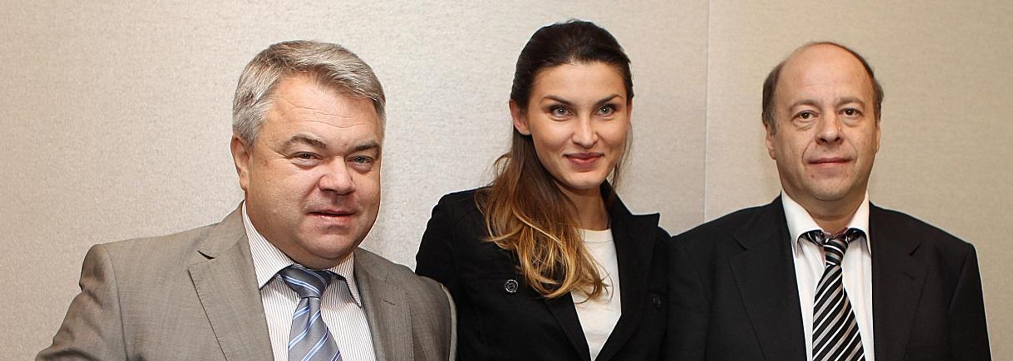 Mikhail Butov, Anna Chicherova and Alexsander Polinsky at the Moscow 2013 press conference in Barcelona (© Giancarlo Colombo )