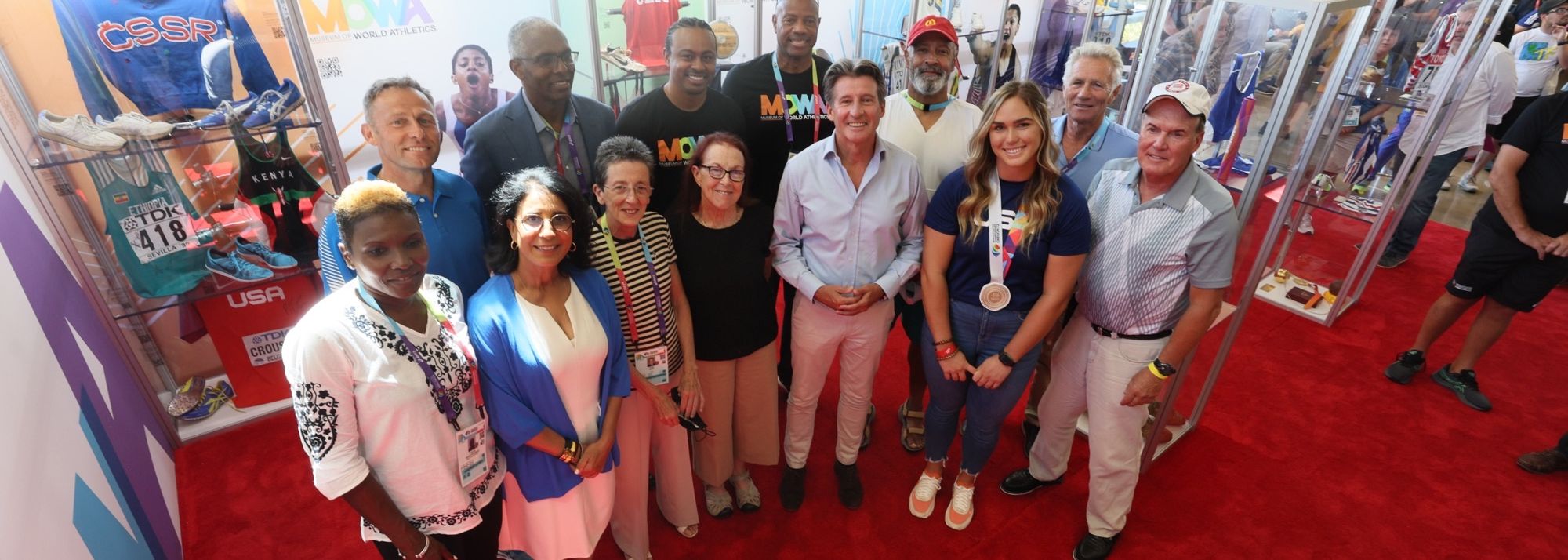 Athletes attending, whose items are on display, included World Athletics Council member Nawal El Moutawakel (spikes from her Olympic 400m hurdles gold medal season of 1984) and Willie Banks (singlet, 1985 triple jump world record).