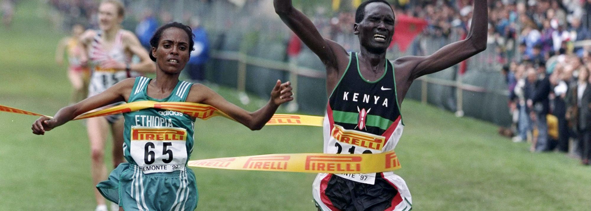 Derartu Tulu and Paul Tergat at the 1997 World Cross Country Championships in Turin (© Getty Images)