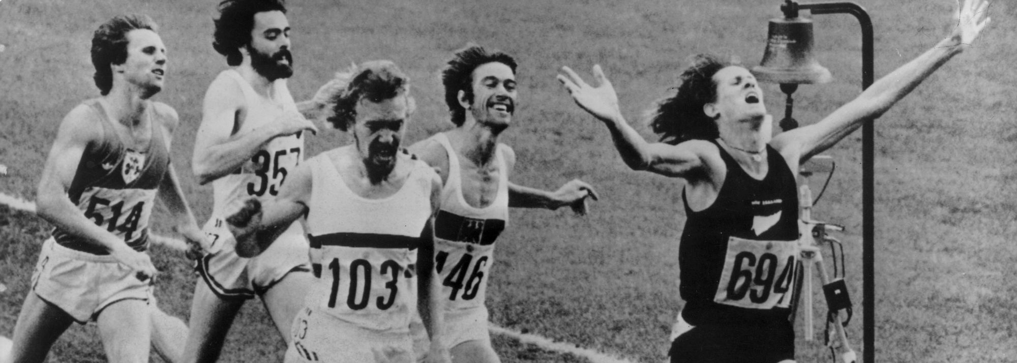 A month after that 2000m record, Walker became Olympic 1500m champion in Montreal, wearing the all-black kit of New Zealand, famously crossing the finish with his arms aloft in triumph.