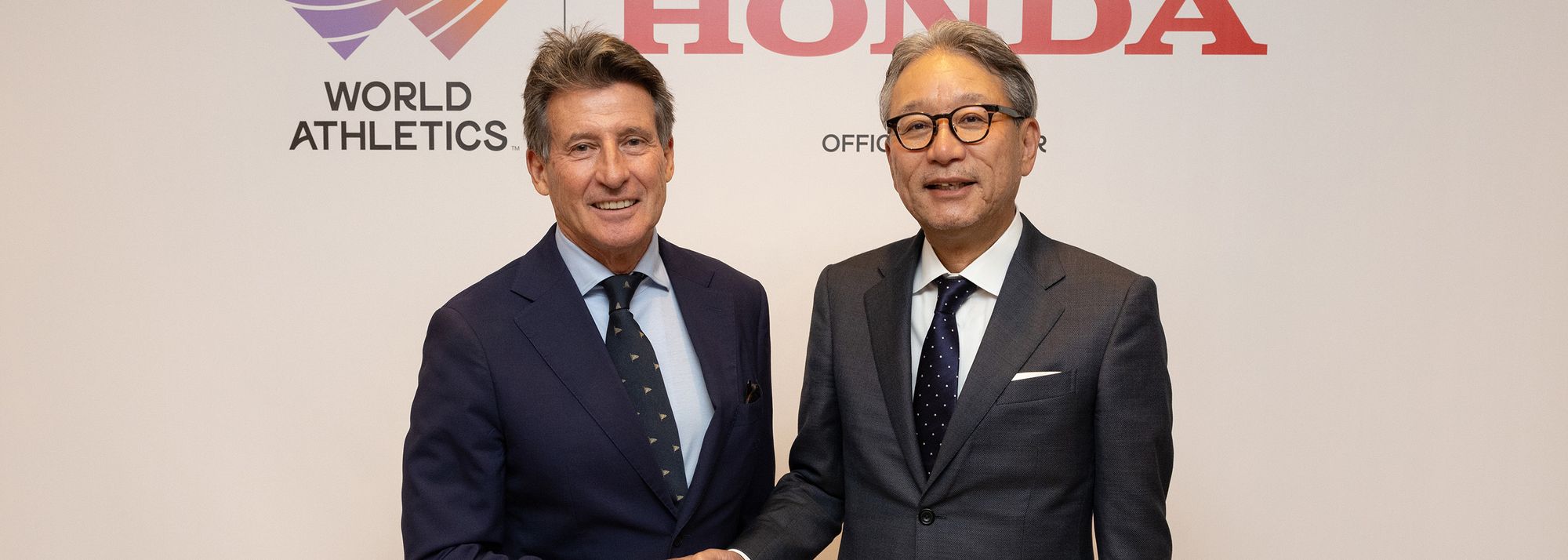 World Athletics President Sebastian Coe and Honda Global CEO Toshihiro Mibe