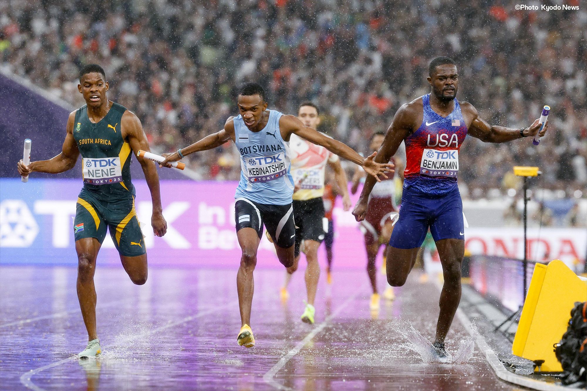 降りしきる雨の中で行われた男子4×400mリレーはボツワナが2分57秒76で、初の金メダルに輝いた。パリオリンピックではアメリカに0.10秒差で敗れて銀メダル。その雪辱を期し、パリの200m王者レツィレ・テボゴを2走に起用して前半から勝負を仕掛けるプラン。それが的中する。