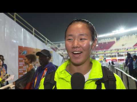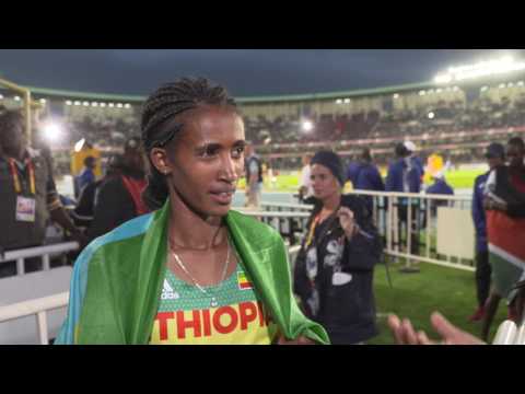 IAAF WU18 Mixed Zone - 3000m Women Final Gold Abersh MINSEWO