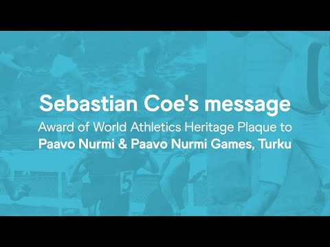 Sebastian Coe's message, World Athletics Heritage Plaque to Paavo Nurmi & Paavo Nurmi Games, Turku