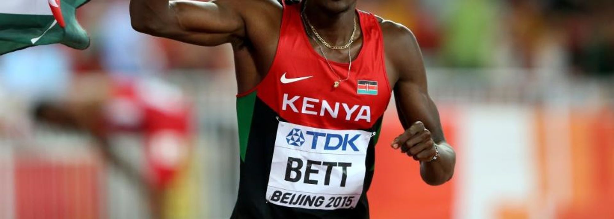 Nicholas Bett after winning the 400m hurdles at the IAAF World Championships, Beijing 2015 (© Getty Images)