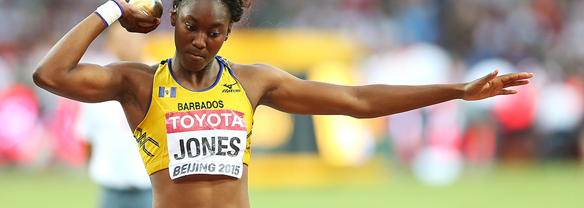 Akela Jones in the heptathlon shot put at the IAAF World Championships Beijing 2015 (© Getty Images)