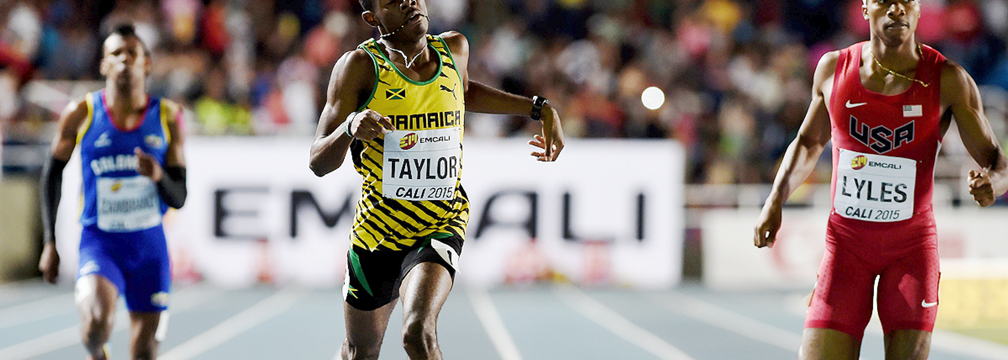 Christopher Taylor on his way to winning the 400m at the IAAF World Youth Championships, Cali 2015 (© Getty Images)