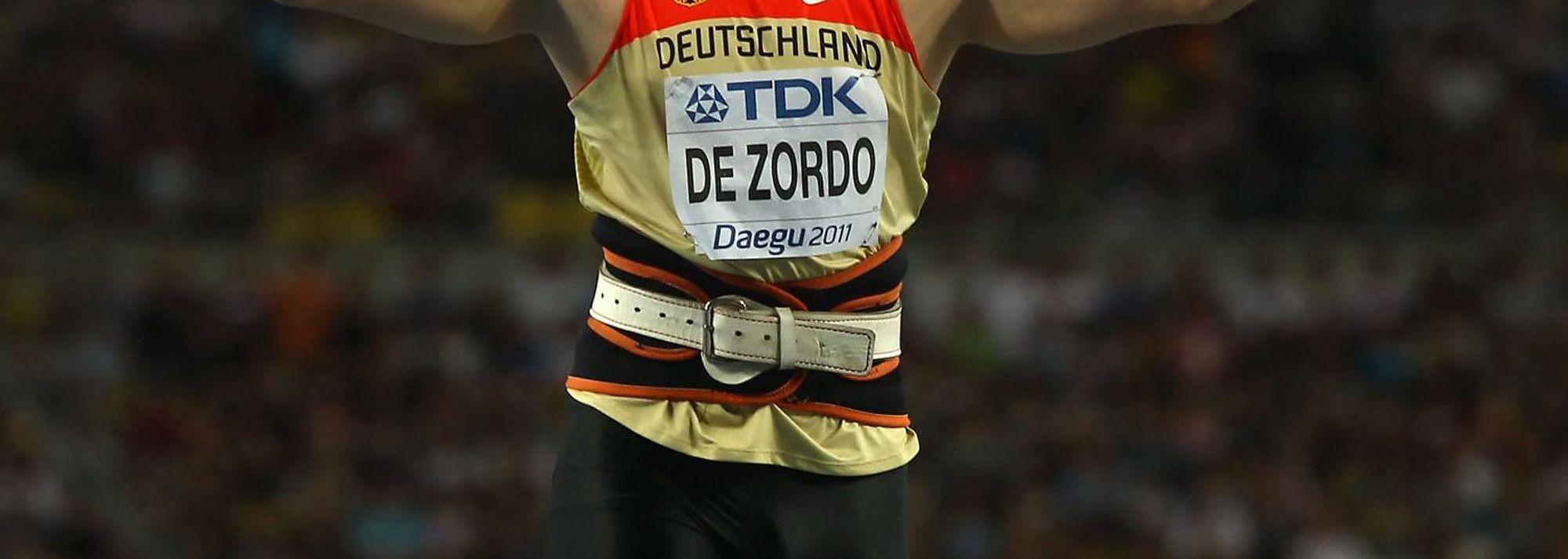 By winning a unified Germany's first gold medal in the event (Detlef Michel won for East Germany in Helsinki in 1983), De Zordo also added to the country's amazing haul of golds in the weight events in Daegu. Robert Harting won the discus on Tuesday and David Storl followed suit three days later in the Shot Put.