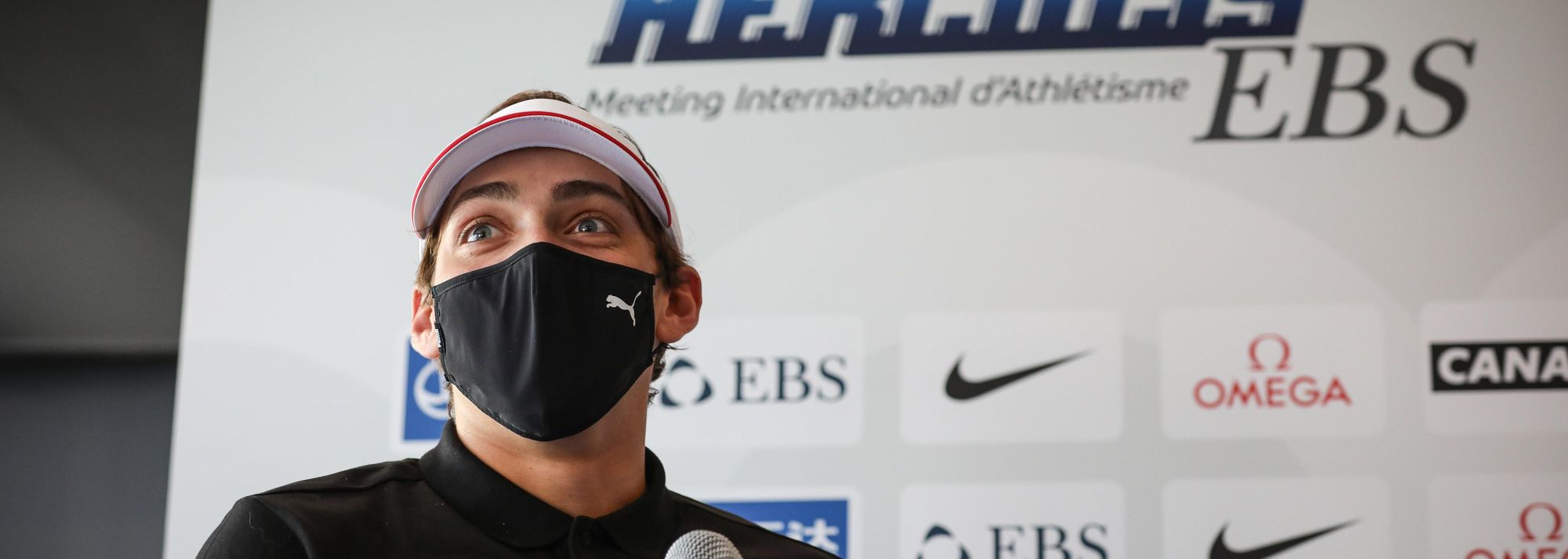 Armand Duplantis at the pre-meet press conference in Monaco (© Philippe Fitte)