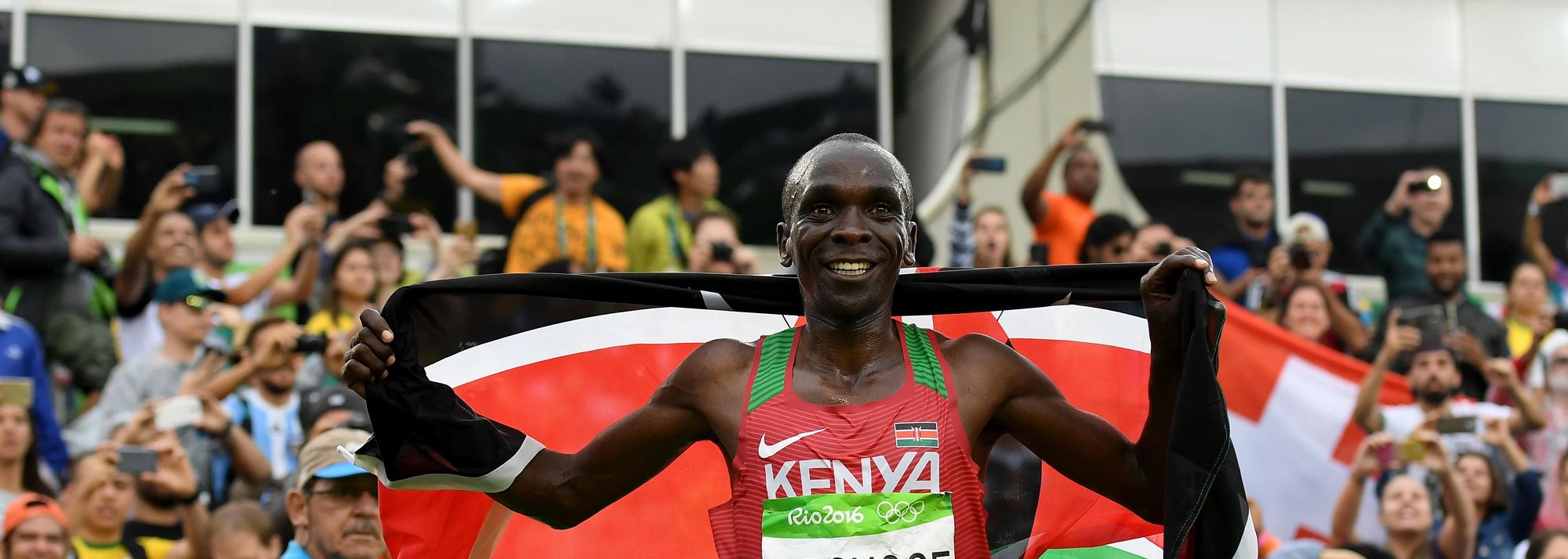 Eliud Kipchoge after winning the men's marathon at the 2016 Rio Olympic Games (© Getty)