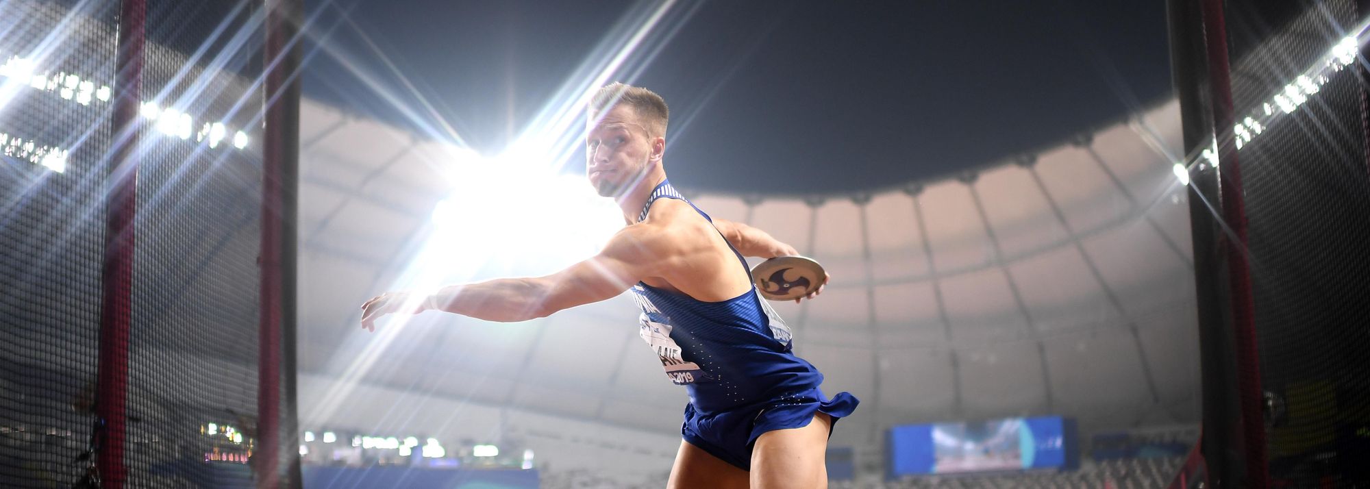 Janek Oiglane in the decathlon discus at the IAAF World Athletics Championships Doha 2019 (© Getty Images)