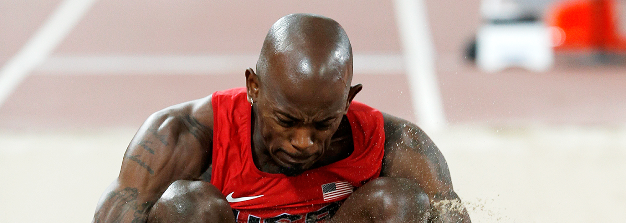 Jeff Henderson in the long jump at the IAAF World Championships Beijing 2015 (© AFP / Getty Images)