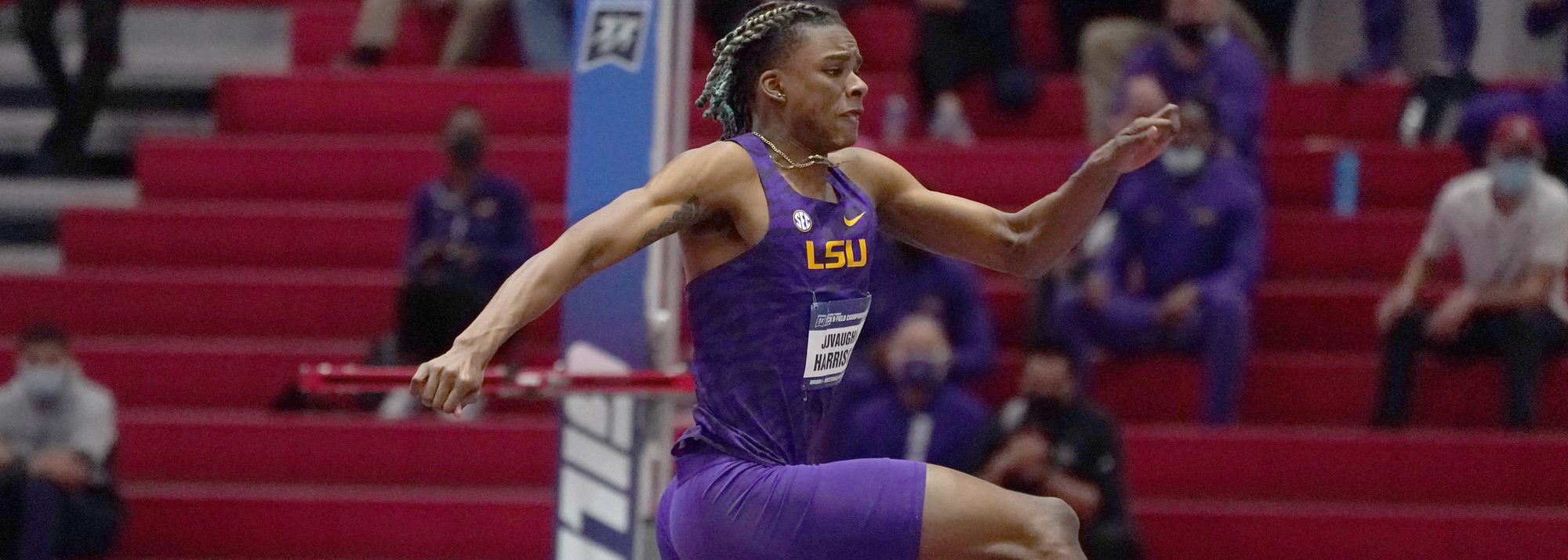 Harrison, a student at Louisiana State University, arrived with a personal best of 8.33m, achieved at this same facility at the SEC Championships on 26 February, and ultimately needed to exceed that to conclude his double triumph.